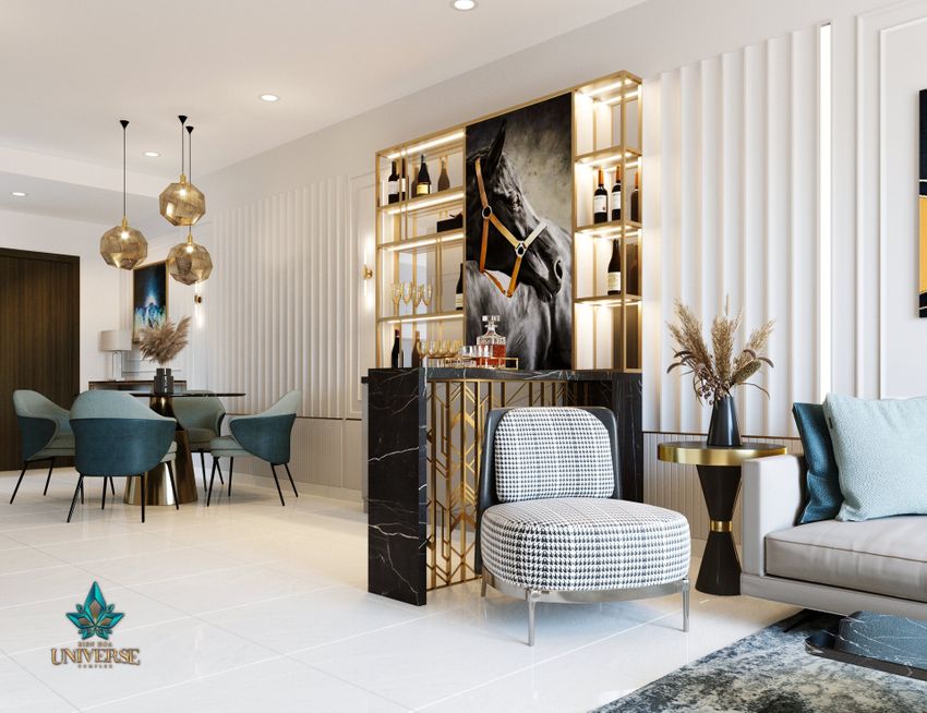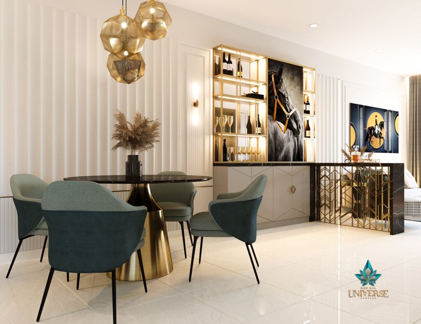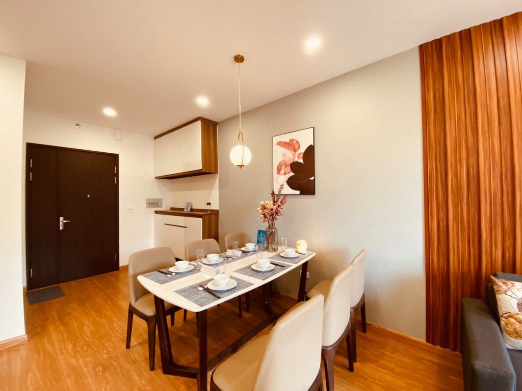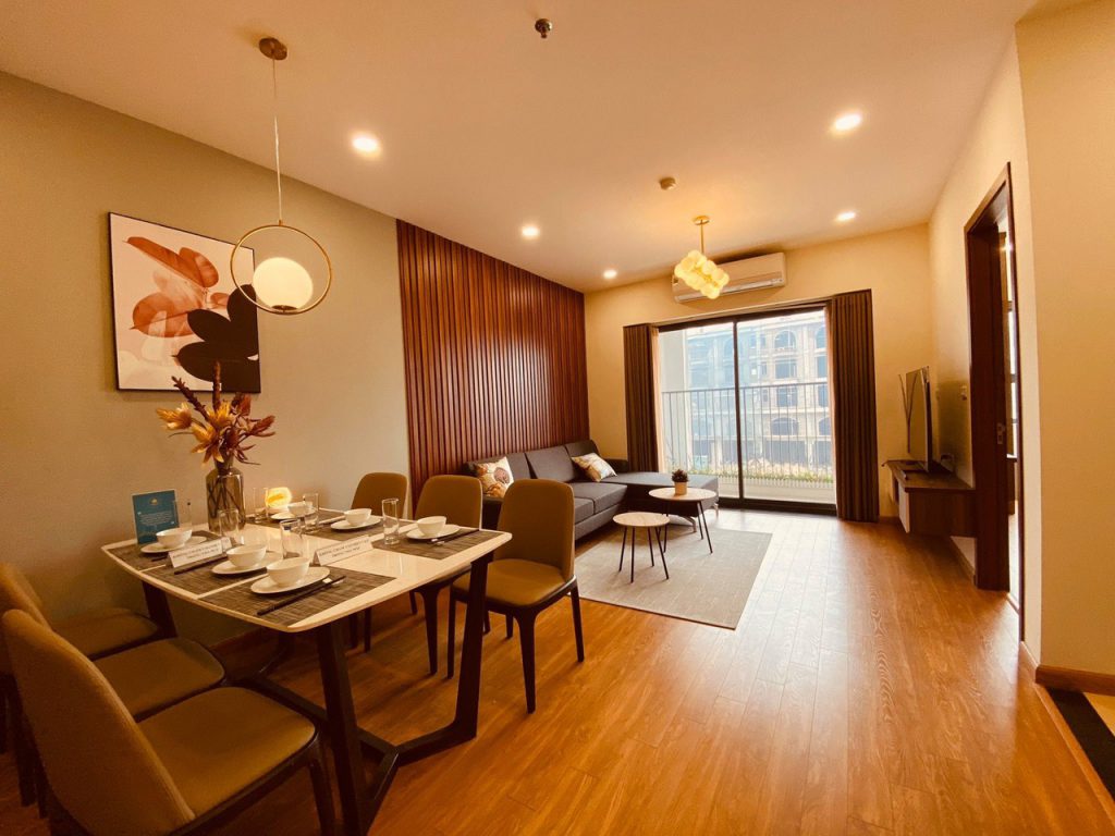 - Phòng khách, phòng ăn, và hành lang trong căn hộ: Sàn gỗ công nghiệp.