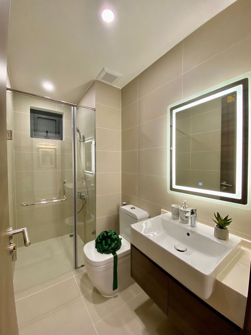- Phòng tắm chính và phòng tắm 2: Chậu rửa mặt: Vòi nóng lạnh, gương soi ; Bồn vệ sinh: Hộp giấy vệ sinh, vòi xịt nước; Khu vực tắm đứng: Vách kính và cửa kính (cho vệ sinh chính), Vòi nước nóng lạnh, vòi sen và ống mềm.